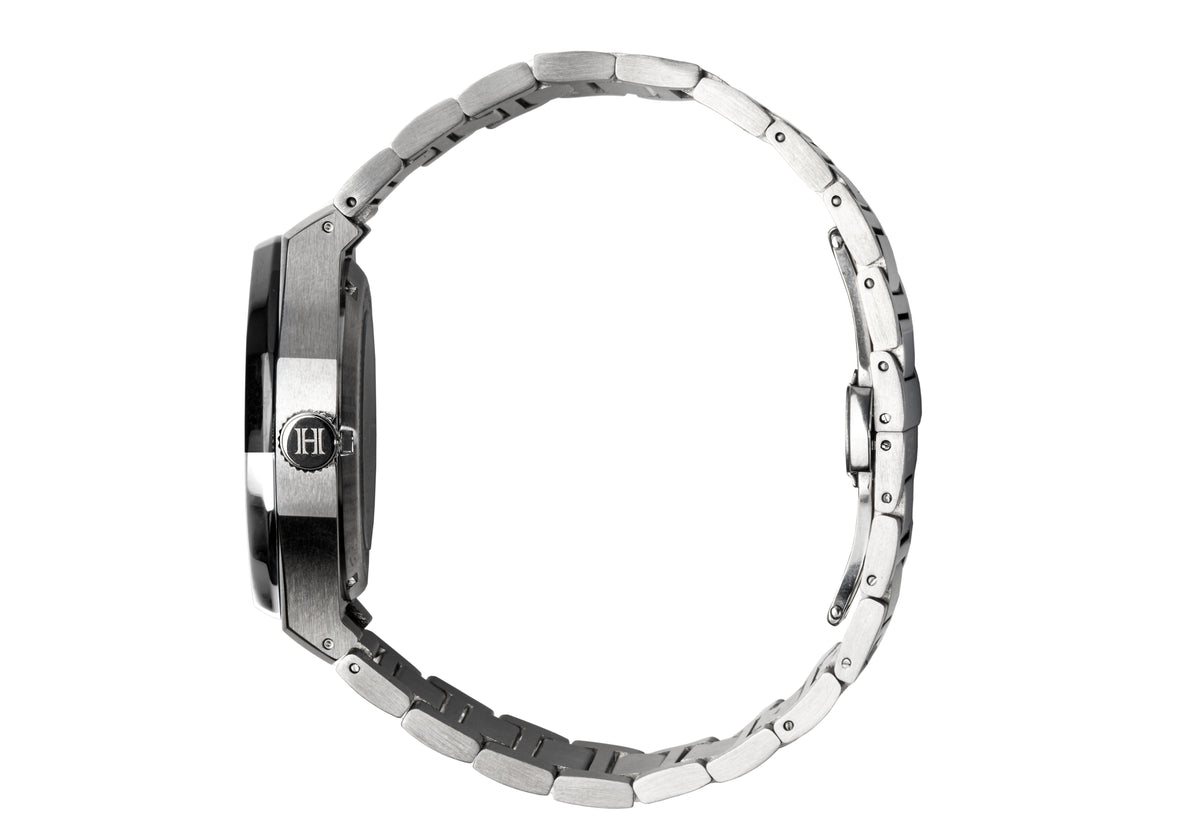 A domed sapphire crystal protects the dial, offering excellent scratch resistance while adding depth and presence. The dial is designed for strong legibility and contrast, creating a bold yet refined look that stands out without feeling excessive.