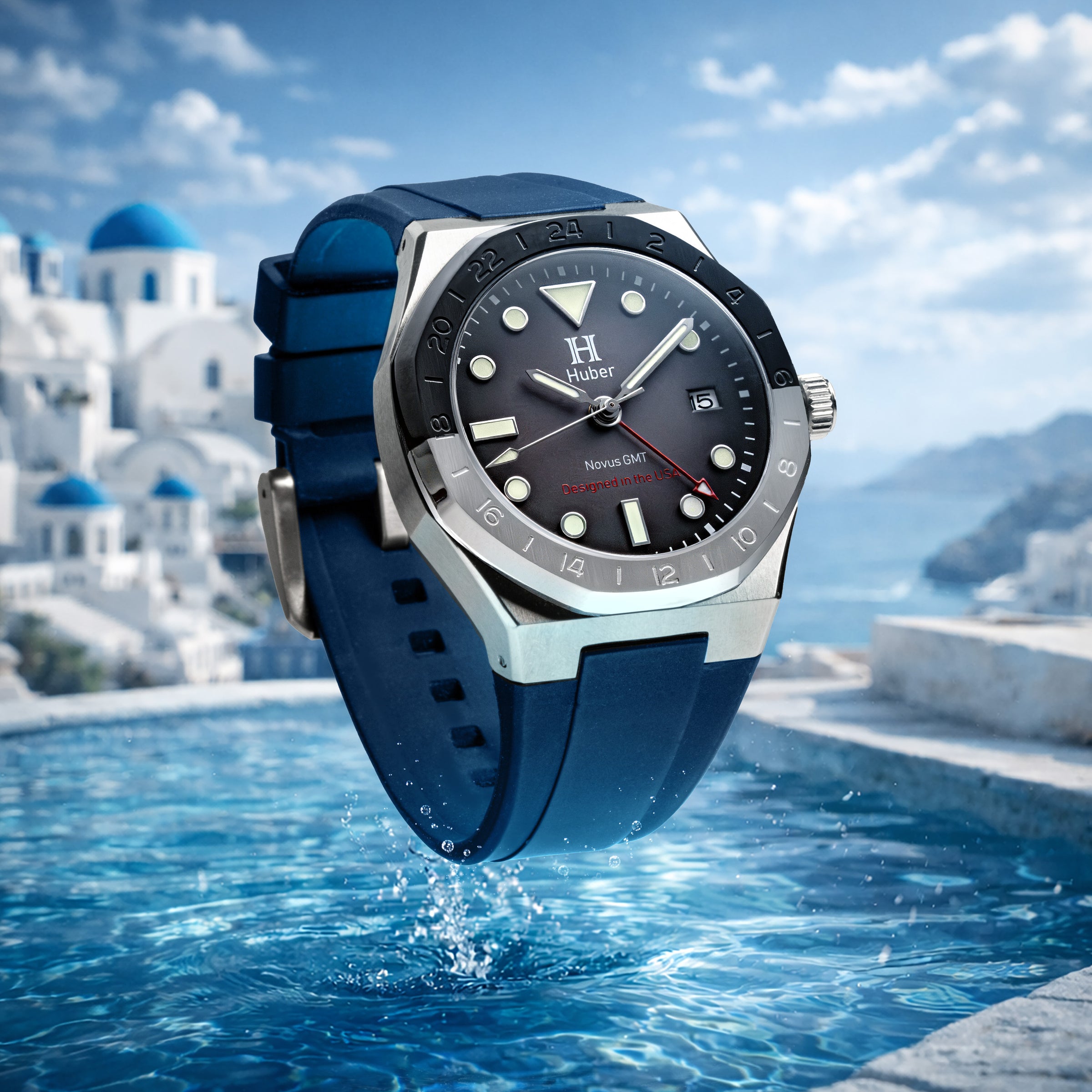 Novus GMT watches are designed, assembled, and shipped from the United States, with final assembly completed in Las Vegas.